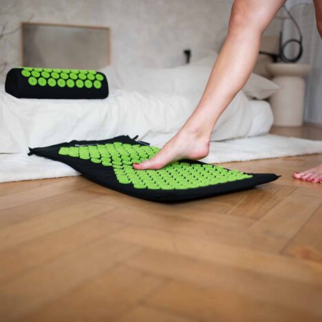 Matossa ja tyynyssä on yhteensä 9 618 tarkasti sijoitettua piikkiä, jotka stimuloivat kehon akupisteitä. Säännöllinen käyttö voi lievittää selkäkipuja, päänsärkyä, stressiä ja univaikeuksia – eikä haittaa, jos rentoudut niin hyvin, että havahdut vasta kuorsaukseen.