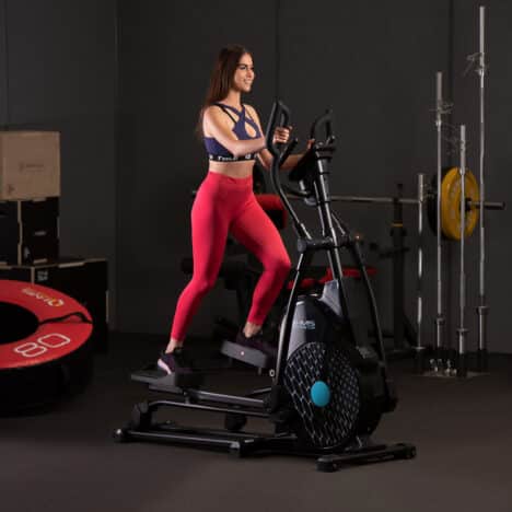 Laitteen suuri 7 kg vauhtipyörä ja tukeva runko takaavat tasaisen ja miellyttävän liikeradan. Magneettinen vastusjärjestelmä tekee harjoittelusta hiljaista, joten treenaaminen ei häiritse muita kotona. Laitteen paino on 72 kg, mikä lisää vakautta, mutta siirtäminen onnistuu helposti siirtopyörien ansiosta. Säädettävät jalat varmistavat, että crosstrainer seisoo tukevasti myös epätasaisella lattialla.