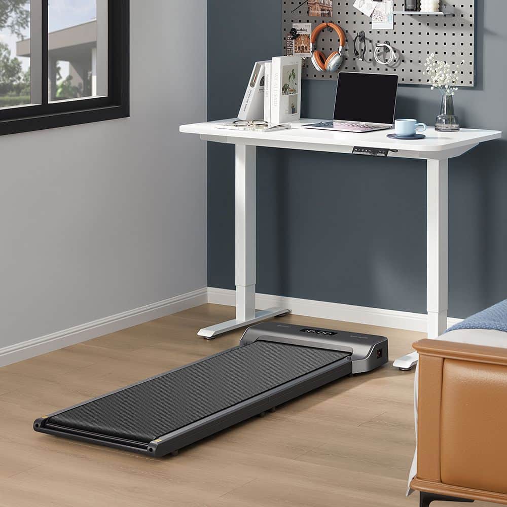 Harjaton moottori takaa hiljaisen ja sulavan käyttökokemuksen 1–6 km/h nopeusalueella, ja monikerroksinen iskunvaimennus suojaa niveliä jokaisella askeleella. Kävelypinta on miellyttävän tukeva ja laite sopii niin työpisteen alle kuin olohuoneen lattiallekin.