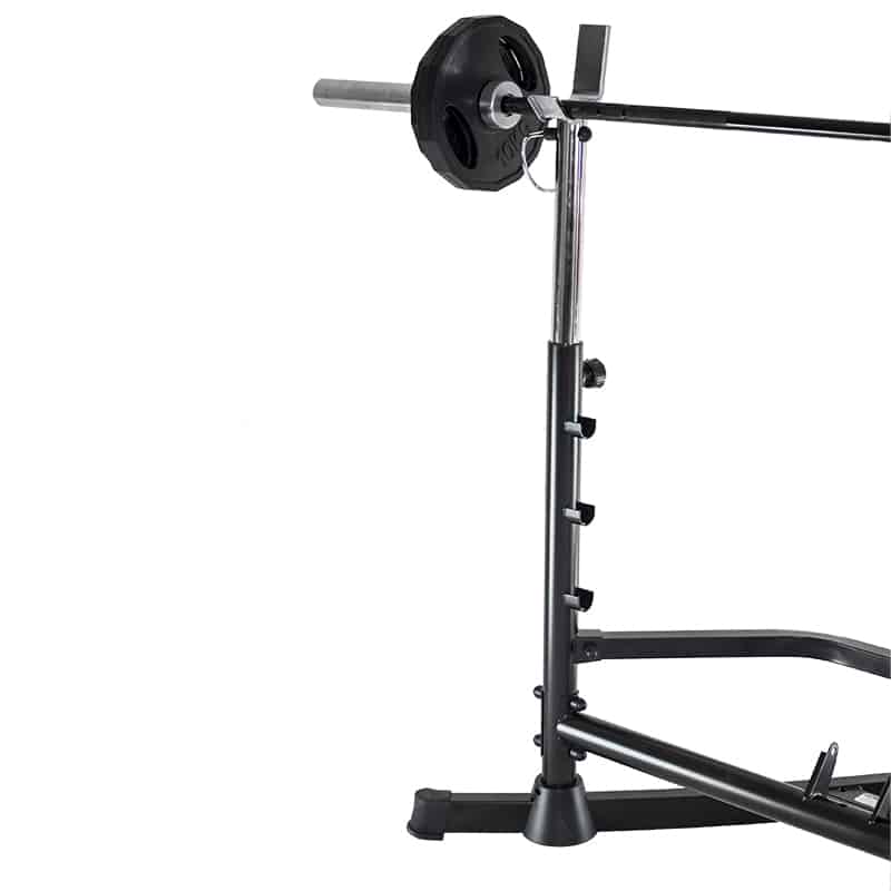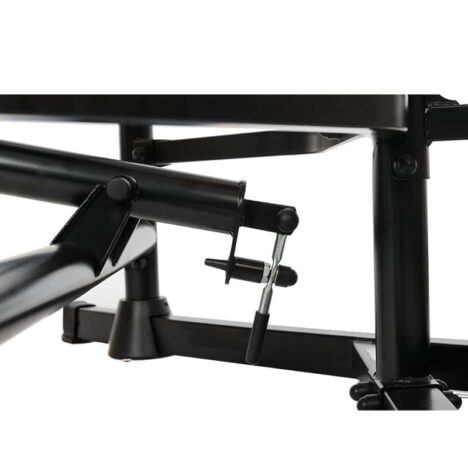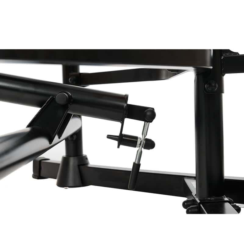 Korkeussäädettävä levytankoteline mahdollistaa turvallisen ja ergonomisen harjoittelun eri käyttäjäkorkeuksille. Laitteen käsivarsiosat ovat säädettävät, joten voit muokata treenin omiin tarpeisiisi sopivaksi. Penkki on suunniteltu myös hauistukityynyharjoitteluun – käytät sitä halutessasi tai treenaat ilman.