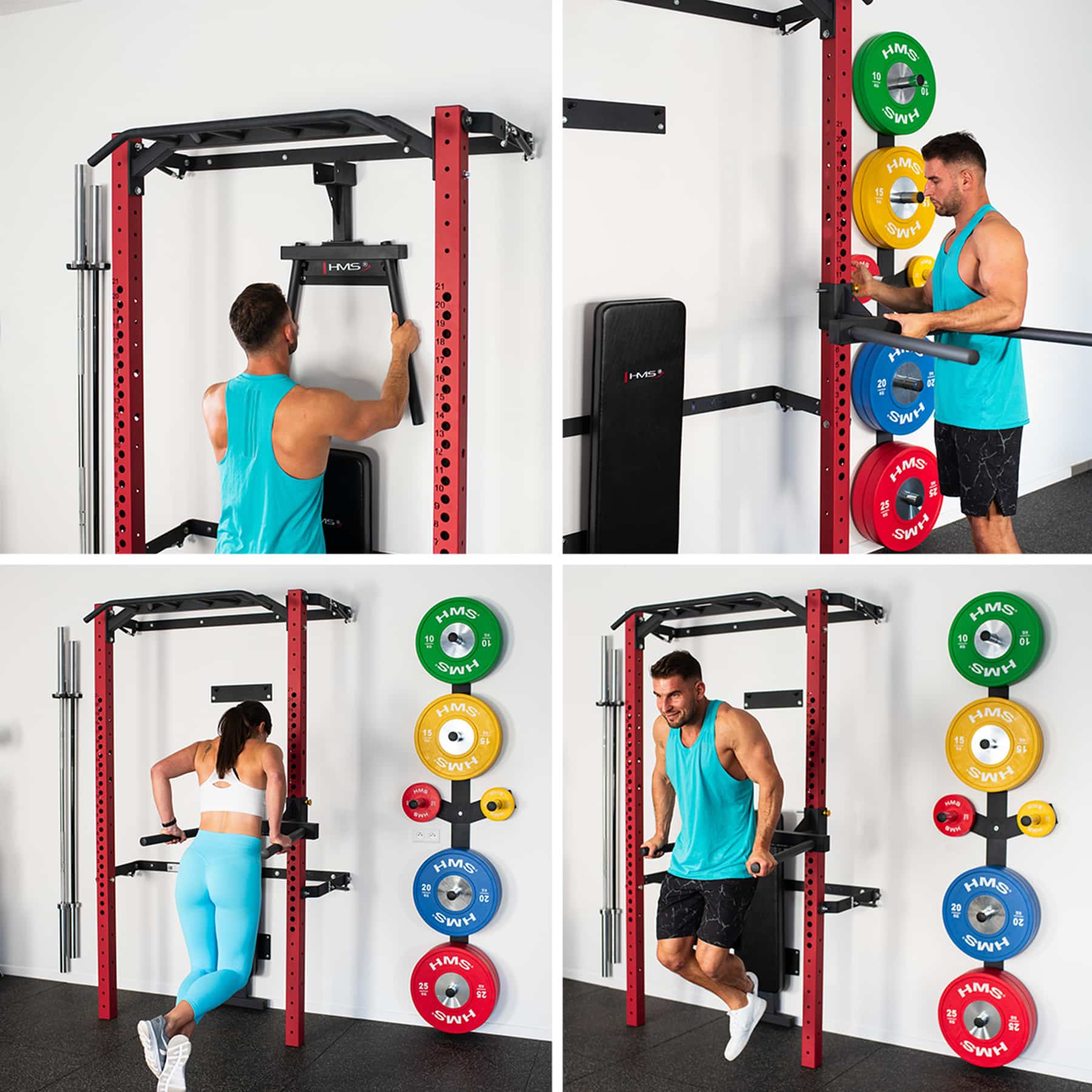 Yhdessä nämä muodostavat kokonaisen kotikuntosalin, jossa onnistuvat niin kyykyt, penkkipunnerrukset, maastavedot, leuanvedot, dipit kuin keskivartaloharjoitteetkin.