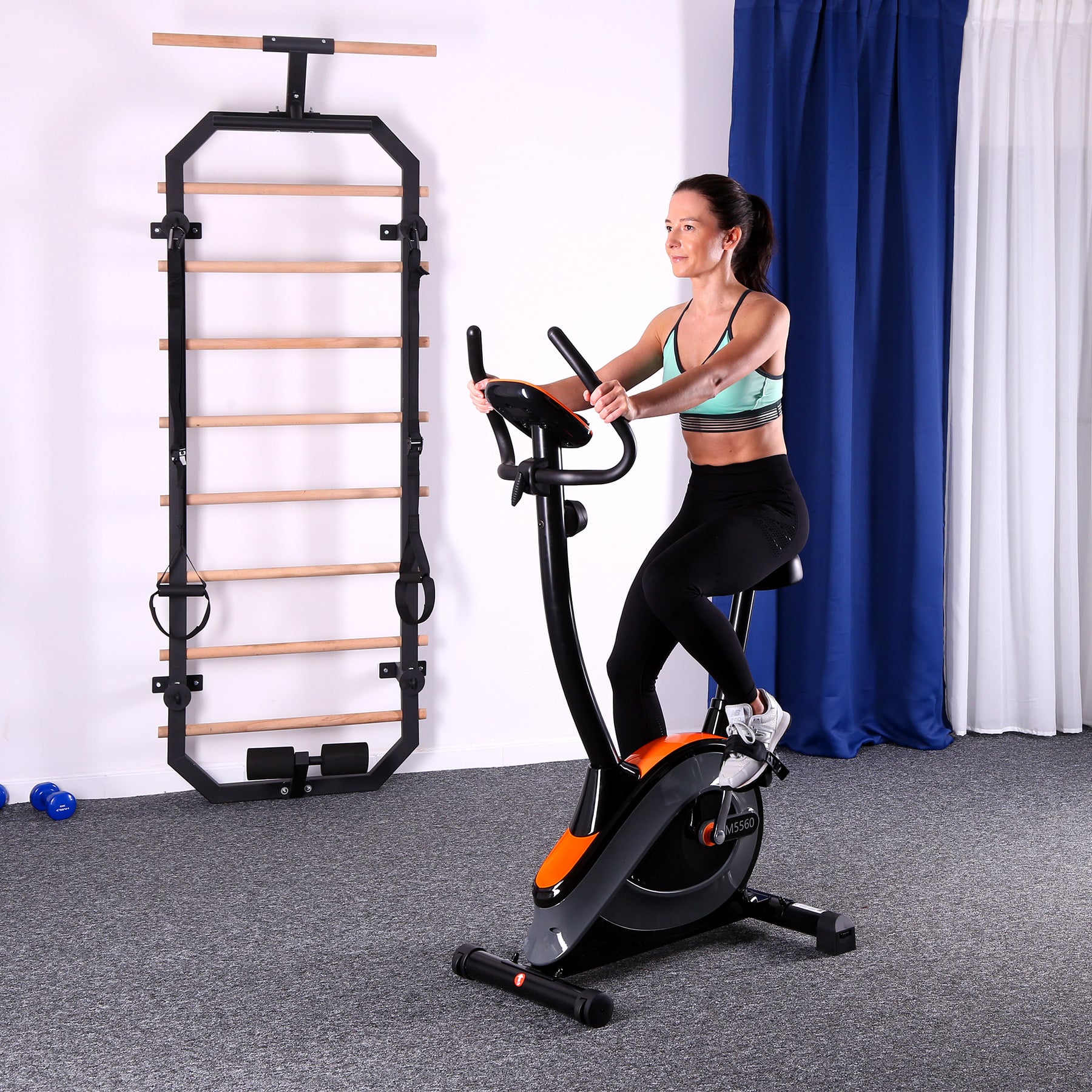 Ergonominen satula on säädettävissä pystysuunnassa seitsemään eri asentoon, joten pyörä sopii monenkokoisille käyttäjille. Käsikahvoissa olevat sykesensorit mahdollistavat sykkeen seurannan ilman lisävarusteita.