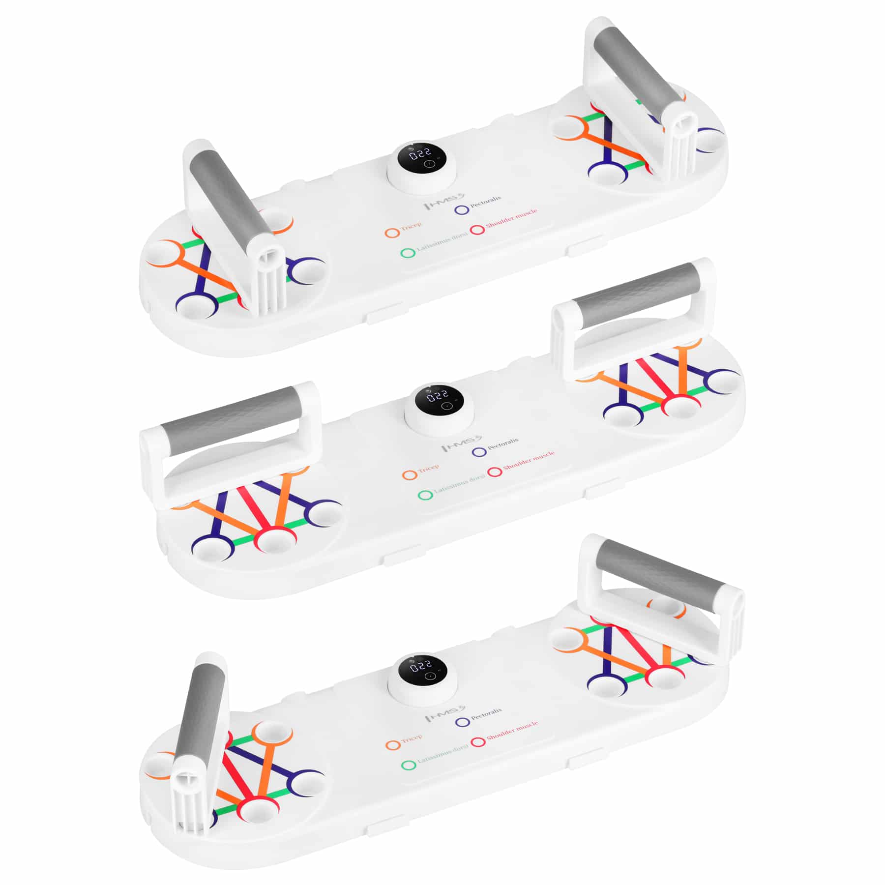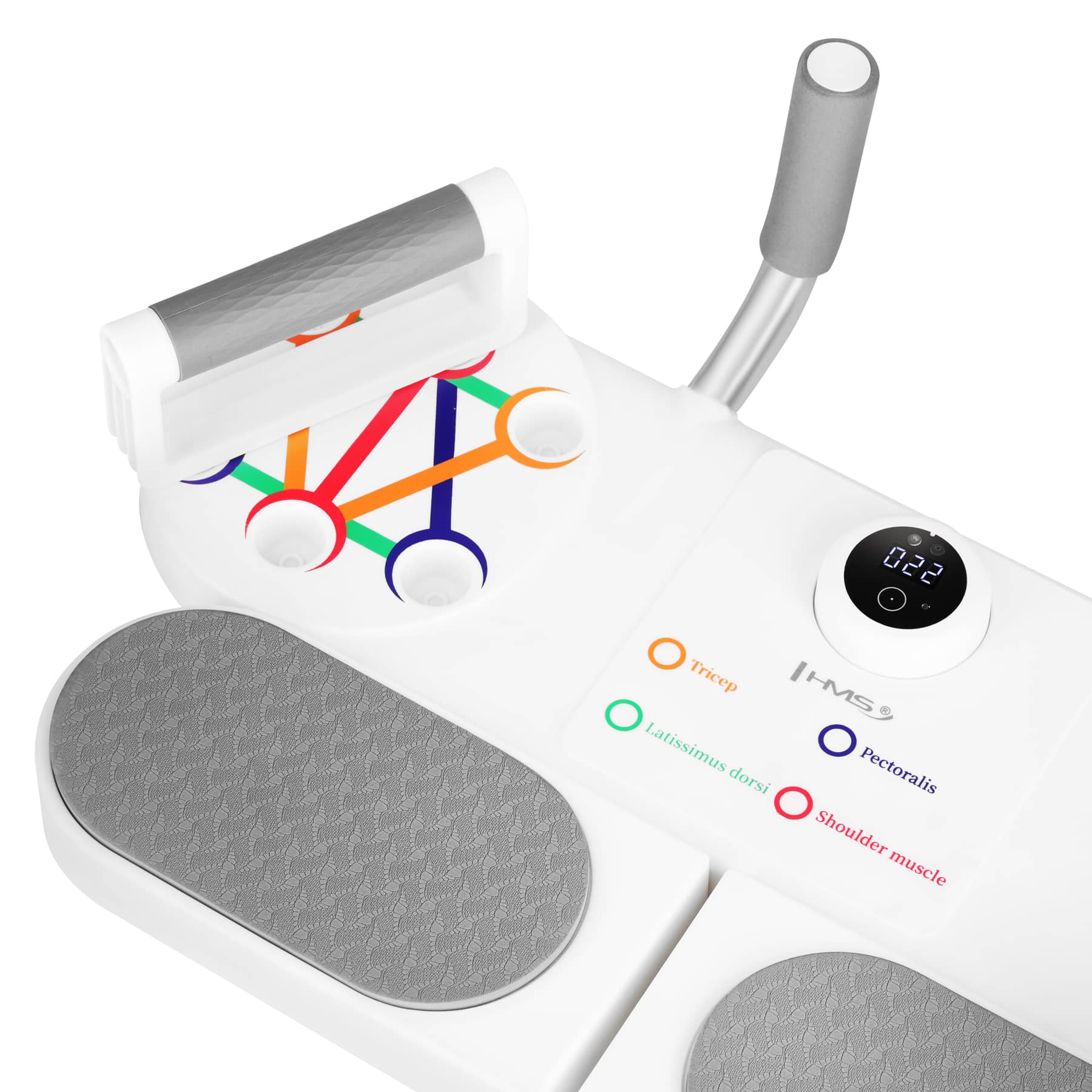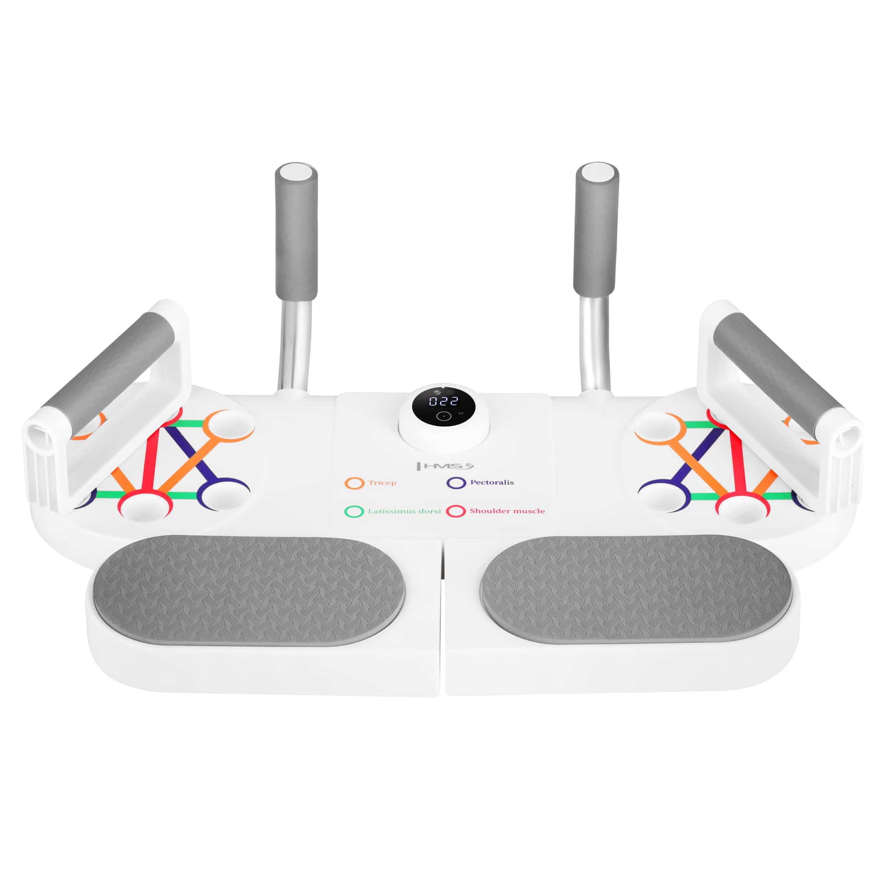 HMS DBP03 on kompakti mutta yllättävänkin monipuolinen punnerruslauta keskivartalon, rintalihasten, olkapäiden ja ojentajien vahvistamiseen. Se yhdistää lankutus-/vatsalaudan, käännettävät punnerruskahvat sekä älykkään toistomittarin, joka käyttää optista IR-läheisyyssensoria laskemaan jokaisen toiston automaattisesti. Ei enää arvuuttelua siitä, montako toistoa meni – lauta hoitaa laskemisen puolestasi.