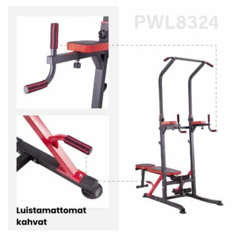 HMS PWL8324 on täydellinen valinta kotikuntosalille, jossa halutaan yhdistää monipuolinen ylävartalotreeni, turvallisuus ja kestävä rakenne yhteen kompaktin kokoiseen laitteeseen.