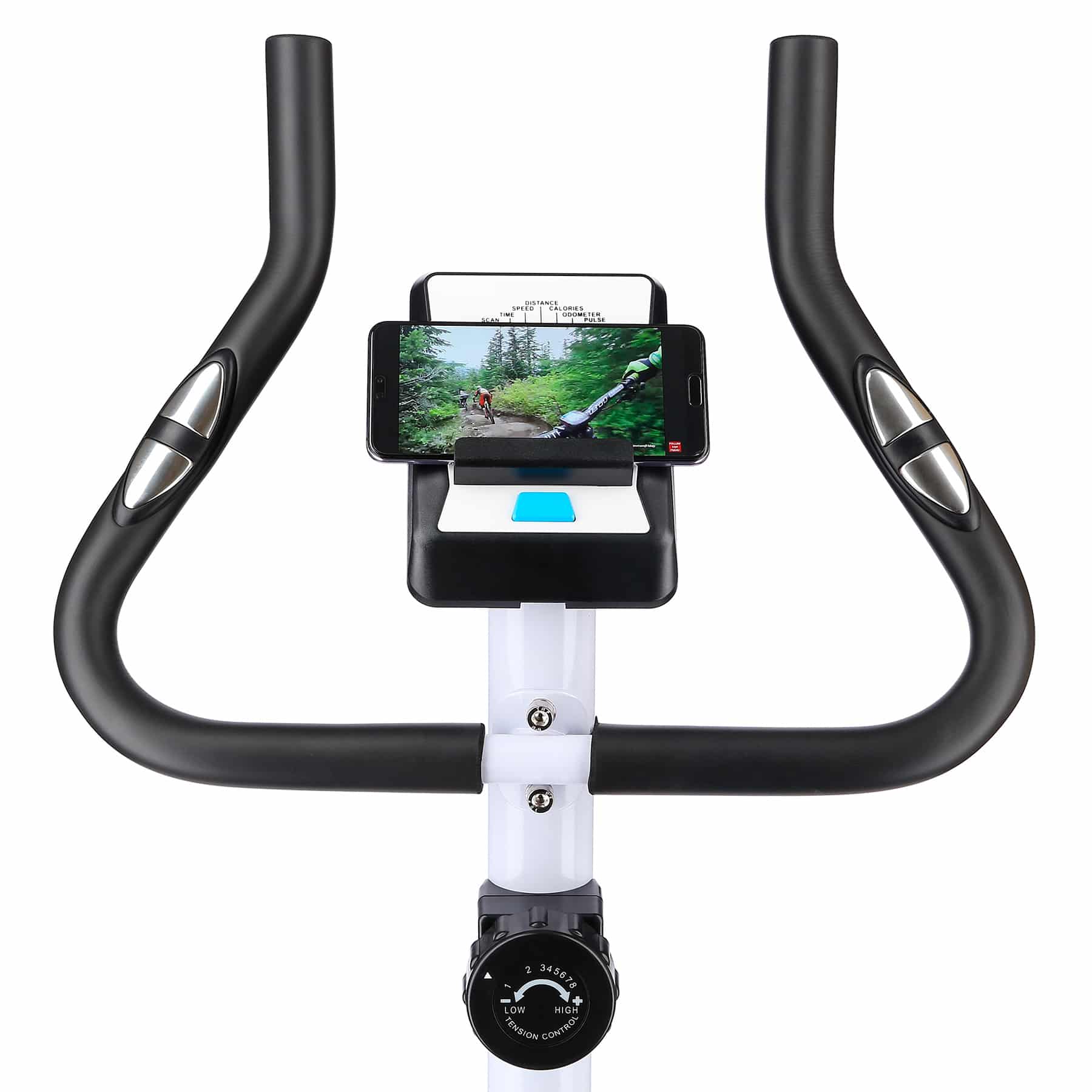 Käytännöllinen moderni tietokone laskee ja näyttää kaikki tärkeimmät harjoitusparametrit, kuten nopeuden, ajan ja poltettujen kalorien määrän. Säädettävä satula sekä mukavat polkimet säädettävillä hihnoilla tekevät harjoittelusta mukavaa. Lisäksi tässä mallissa on mobiililaiteteline, joka tekee treenistä entistä nautinnollisempaa, voit vaikkapa katsella suosikkisarjaa tai elokuvaa tabletilta treenin lomassa.