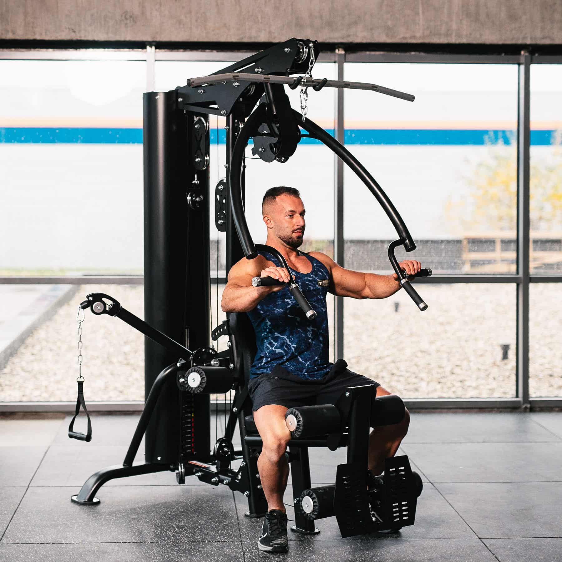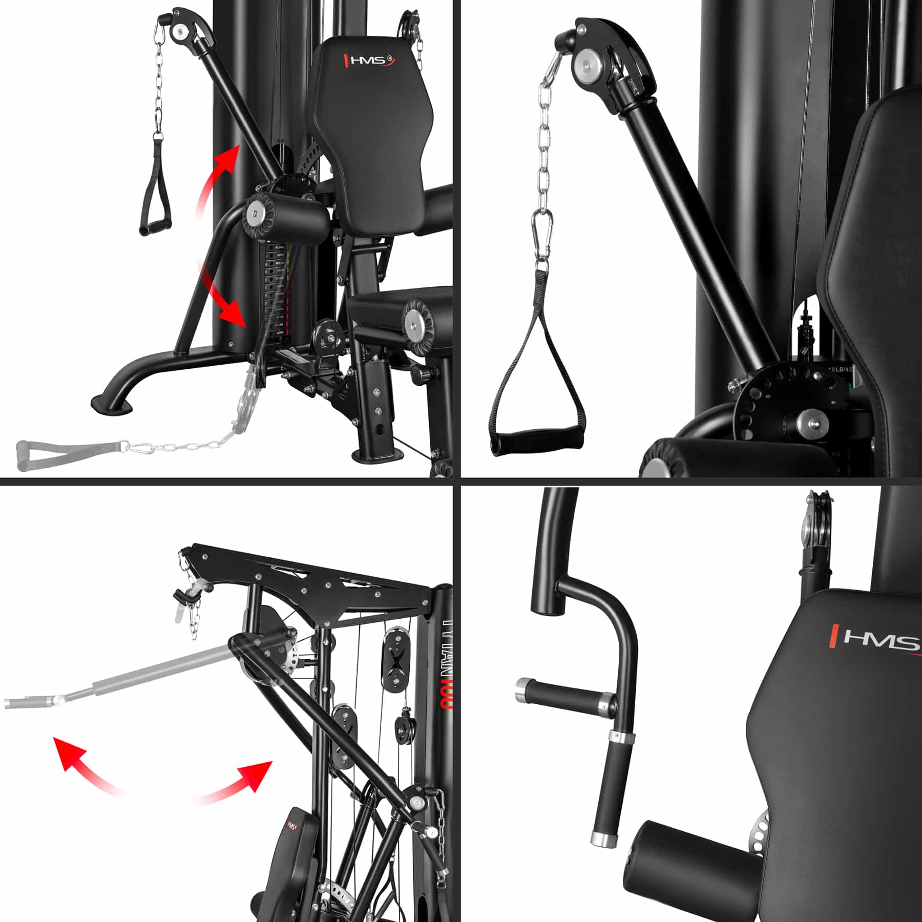 TYTAN 100 HMS on kaupalliseen käyttöön suunniteltu monitoimilaite, joka yhdistää useiden kuntosalilaitteiden ominaisuudet yhdeksi tehokkaaksi ja kompaktiksi kokonaisuudeksi. Se on suunniteltu kestämään kovaa käyttöä saleilla, hotelleissa ja personal training -studioissa – ja sopii myös vaativille kotitreenaajille, jotka haluavat vain parasta.