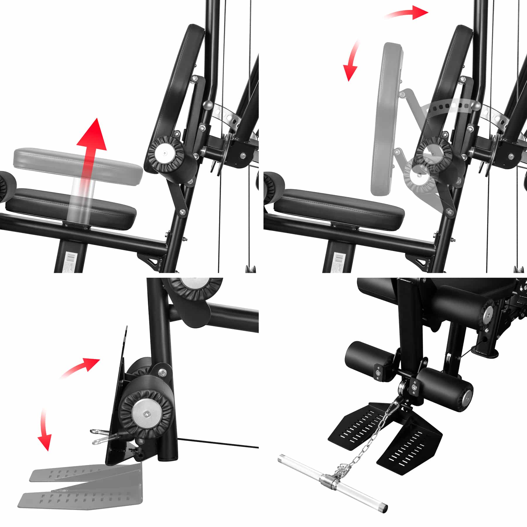 - Säädettävä jalkaprässin selkänoja (7 asentoa)