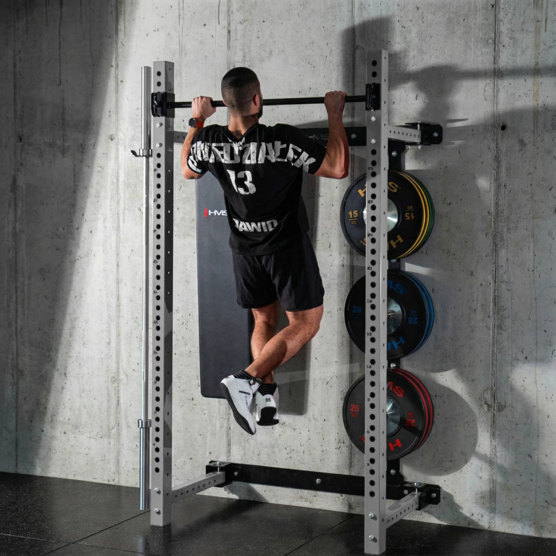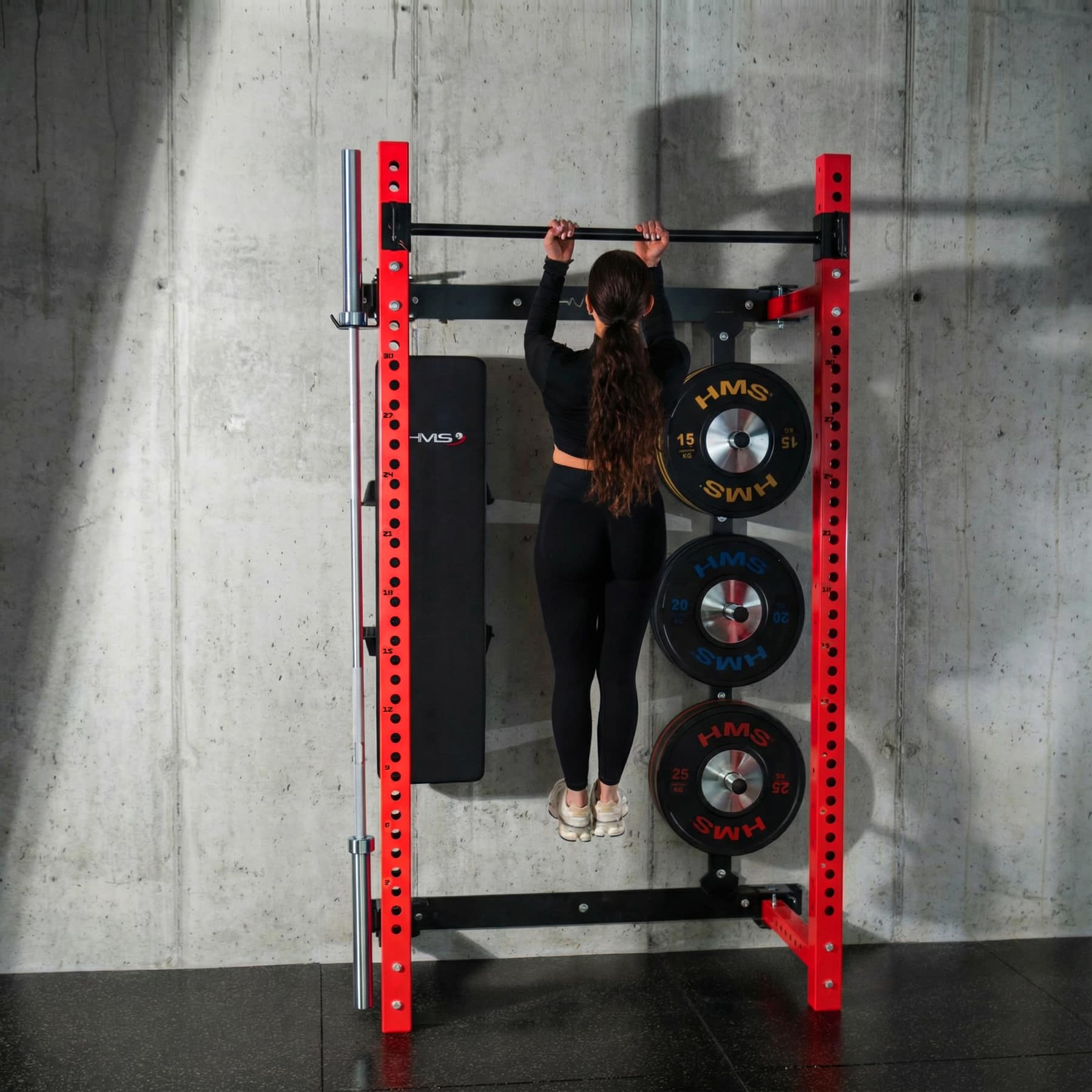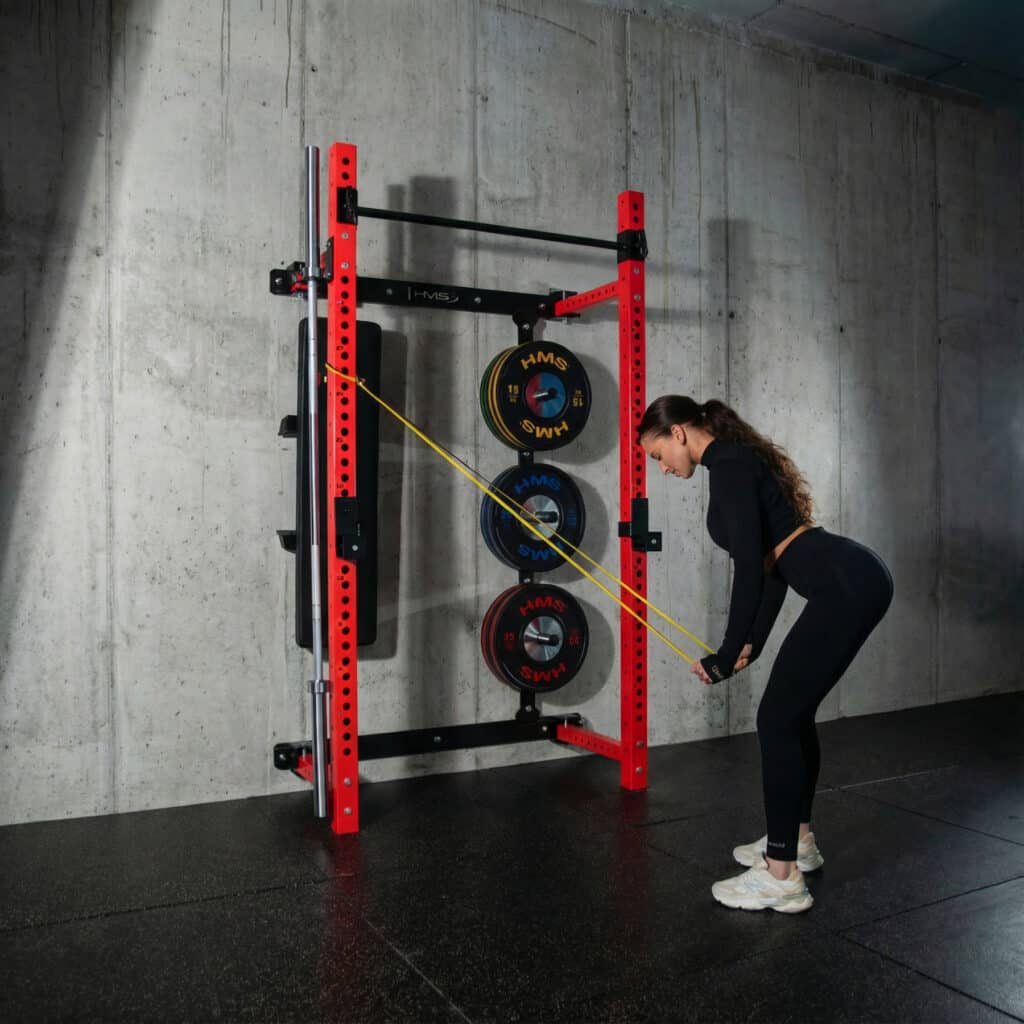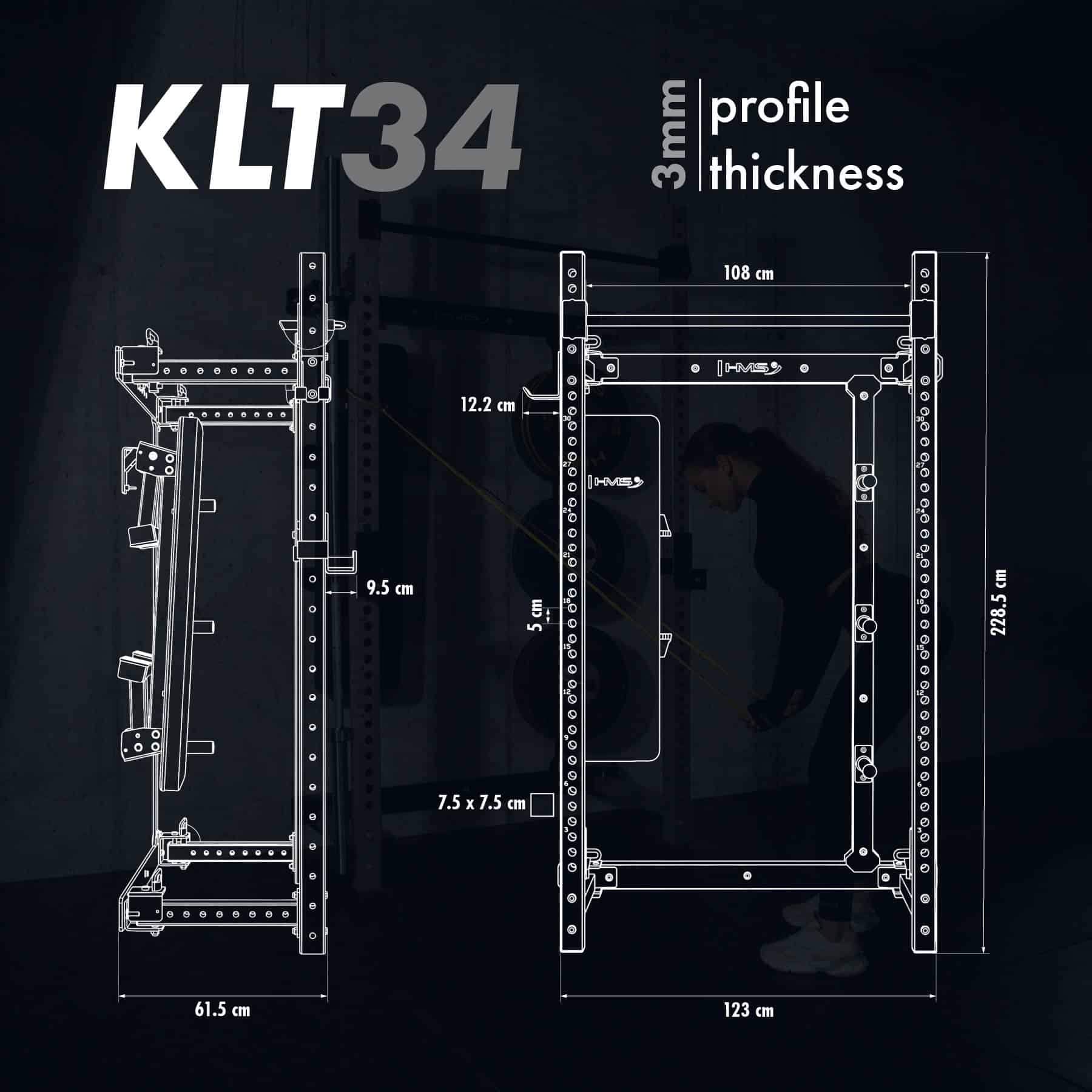 HMS KLT34 on monipuolinen ja tilaa säästävä taitettava kyykkyhäkki kotikuntosalille. Se on suunniteltu erityisesti tiloihin, joissa kattokorkeus tai lattiatila on rajallinen, mutta treeniltä vaaditaan silti täyttä toiminnallisuutta ja turvallisuutta. Sivusuuntainen liukurakenne, tukeva teräs ja toimitukseen sisältyvä taitettava penkki tekevät KLT34-mallista kokonaisvaltaisen voimaharjoitteluaseman kotiin.