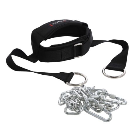 HD03 Neck Trainer kiinnitetään helposti tarranauhoilla ja säädettävällä ketjulla, joka mahdollistaa kuormituksen säätämisen omien tavoitteiden mukaan. Laitteen 82 cm ketju sopii hyvin levypainoille, taljalle tai muille lisäpainoille – treenivaihtoehtoja on runsaasti.