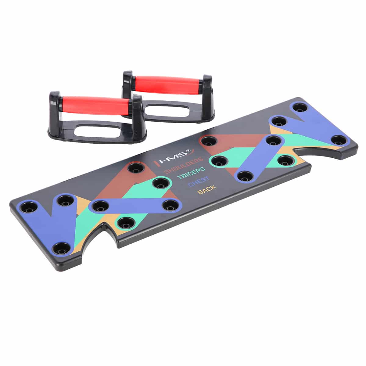 HMS PU10 on innovatiivinen ja monikäyttöinen punnerruslauta, joka tarjoaa tehokkaan tavan treenata lähes koko ylävartaloa. Laudan avulla voit muuttaa kahvojen kulmaa ja kohdistaa harjoittelun eri lihasryhmiin, kuten rintalihaksiin, ojentajiin, hartioihin ja selkään. Eri lihasryhmät on merkitty värikoodeilla, mikä tekee asetusten vaihtamisesta nopeaa ja helppoa.