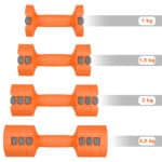 HL03-käsipainoissa painoa säädetään yhdellä painikkeella. Galvanoiduista rautasegmenteistä koostuvat painot lisätään tai poistetaan muutamassa sekunnissa. Yhdelle käsipainolle on neljä painotasoa: 1 / 1,5 / 2 / 2,5 kg, joten kuorman voi säätää tarkasti liikkeen ja harjoitustason mukaan.