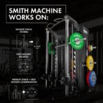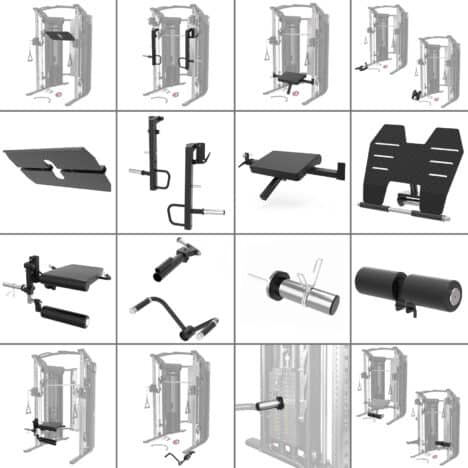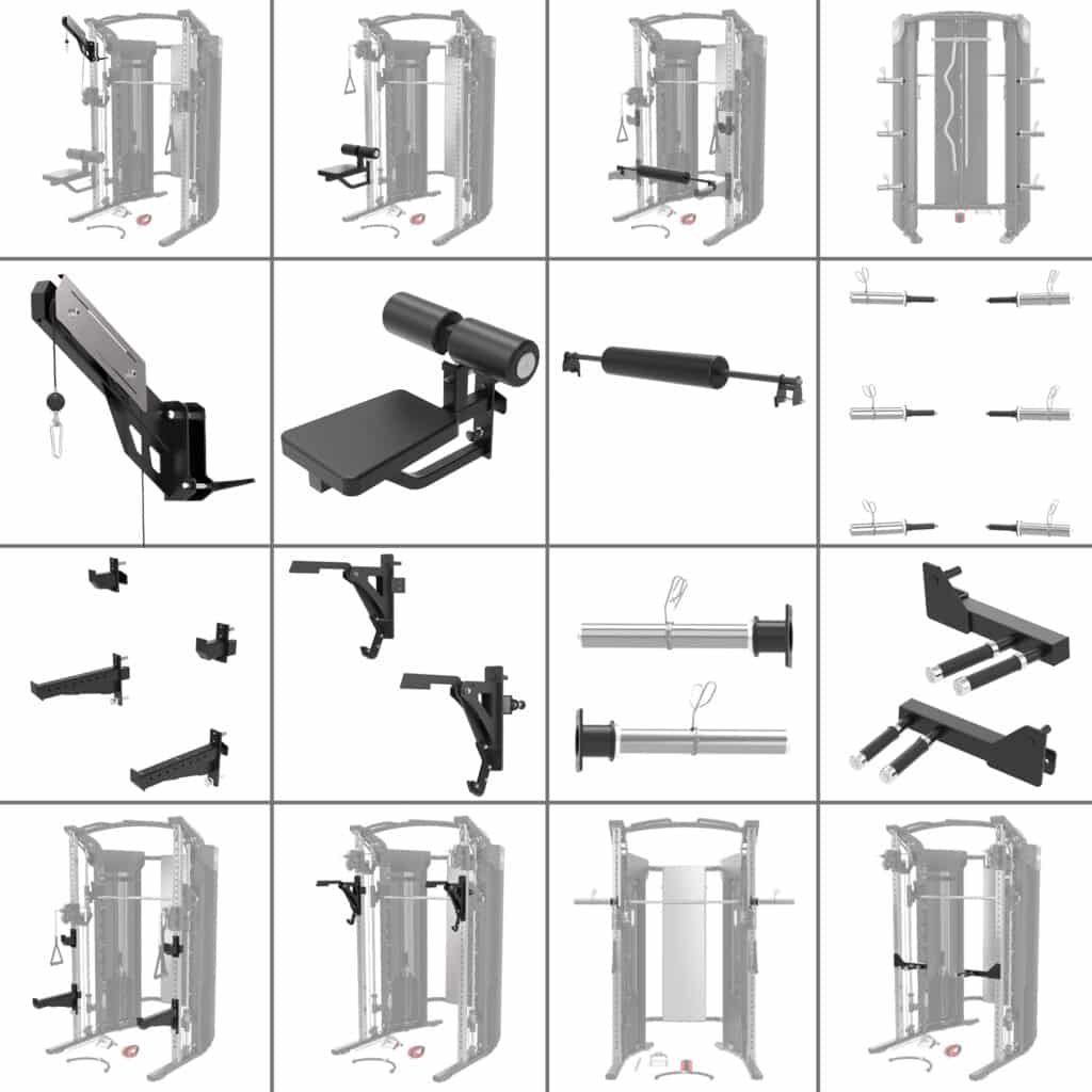 Käytännössä koko kehon treeni onnistuu tällä laitteella: kyykyt, penkit, vedot, taljaliikkeet, ristitaljat, leuanvedot ja kymmenet lisävarusteilla tehtävät harjoitteet.