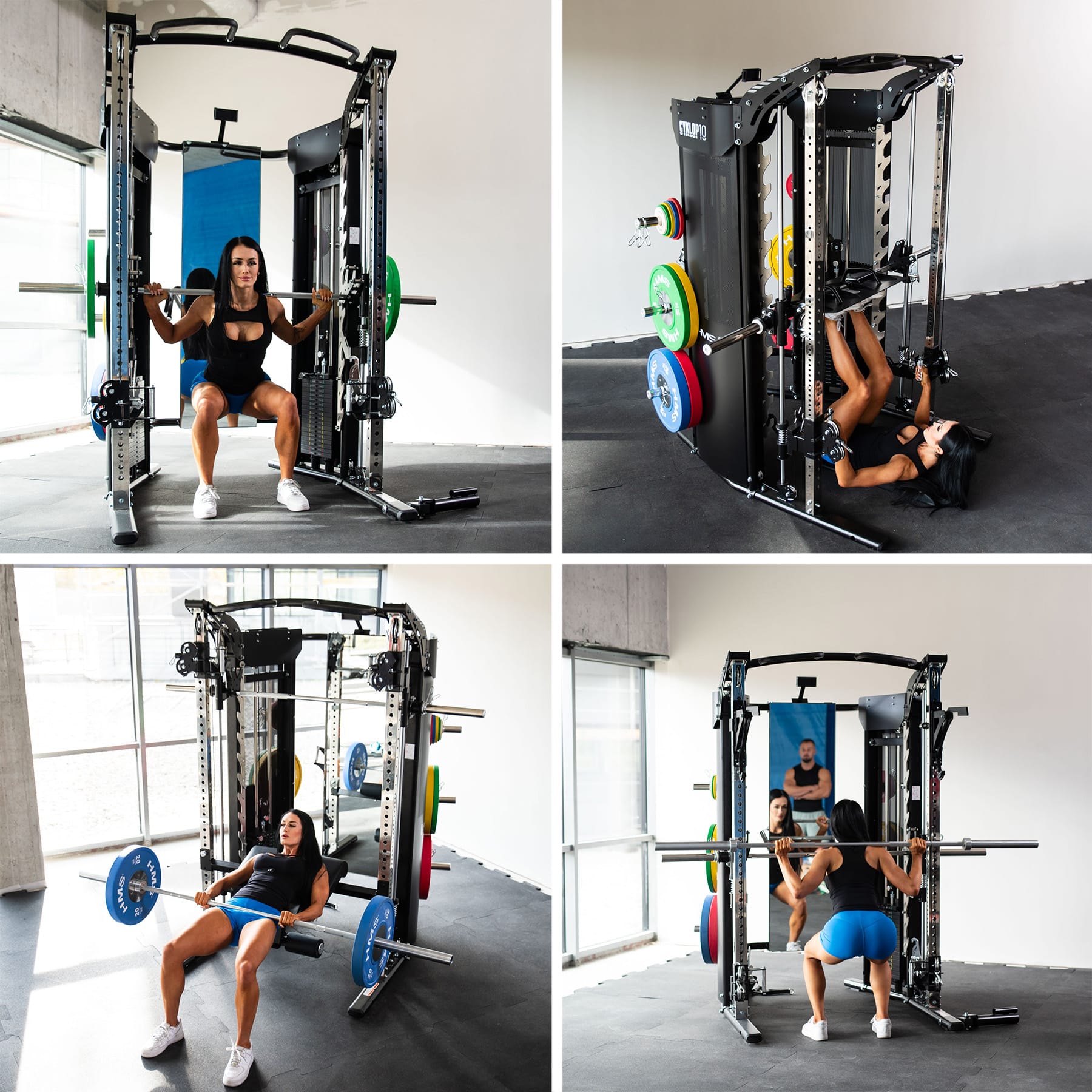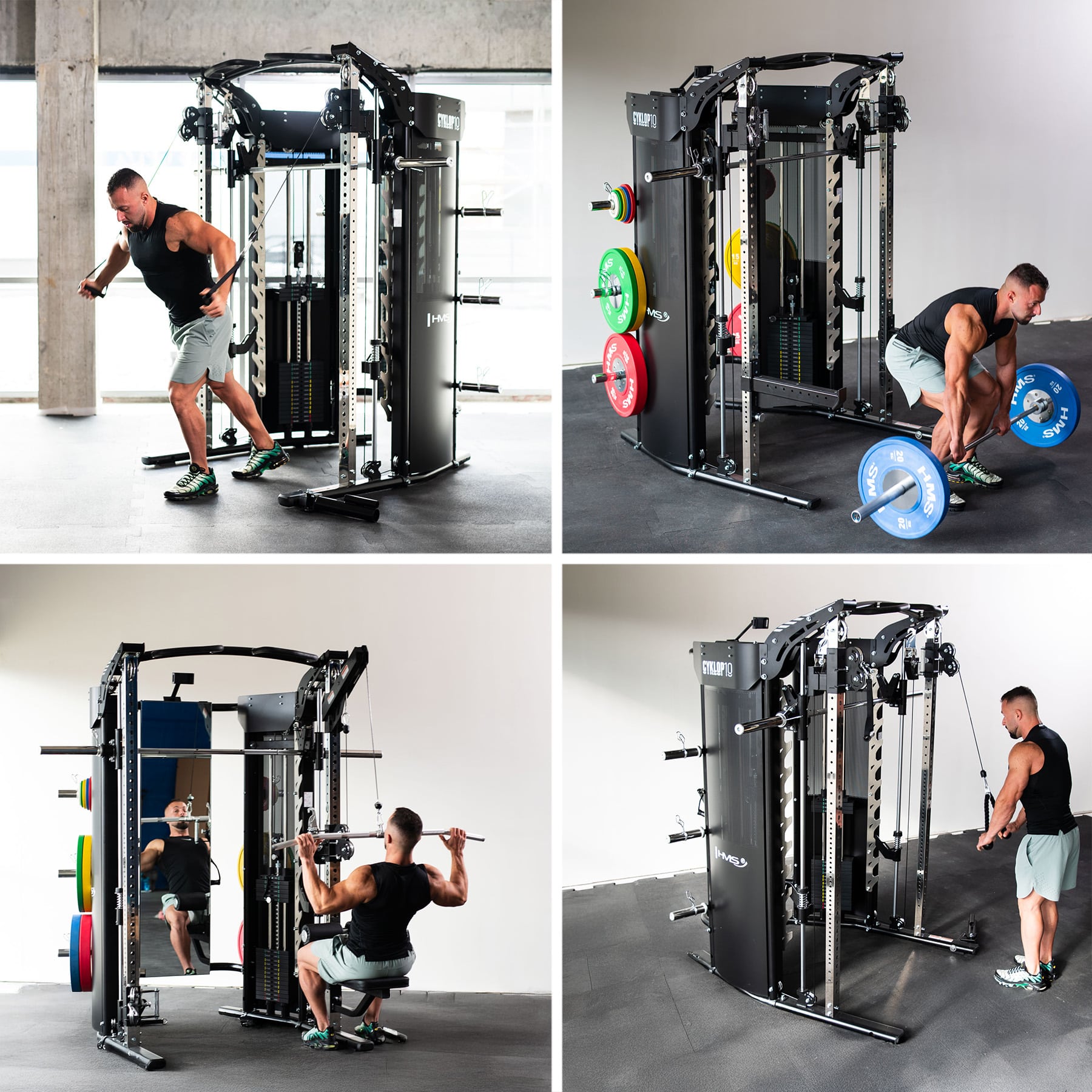 HMS CYKLOP 10 on edistyksellinen 3-in-1 -kuntokeskus, joka yhdistää Smith-laitteen, power rackin ja taljajärjestelmän yhdeksi kokonaisuudeksi. Kaksi tarkkaa 90 kg painopakkaa ja innovatiivinen mekanismi, joka kytkee Smith-tangon suoraan painopakkaan, avaavat täysin uuden tavan treenata: vapailla painoilla, painopakalla tai… molemmilla samaan aikaan. Yksi laite, puoli kuntosalia.