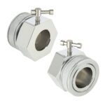 Kiillotettu teräs antaa lukolle sekä tyylikkään että äärimmäisen kestävän viimeistelyn. Kiinnitys on nopeaa ja suoraviivaista. Kompakti mitoitus jättää reilusti tilaa levypainoille ja 2,5 kg paino per lukko toimii kätevästi myös lisäkuormana treenissä.