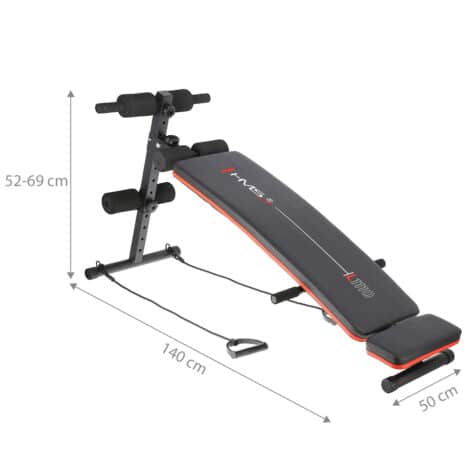 HMS L1110 vatsapenkki on monipuolinen vinopenkki, joka on suunniteltu erityisesti vatsalihasharjoituksiin, kuten istumaannousuihin. Penkki mahdollistaa myös etu- ja käsivarsien harjoitteet vastuskuminauhojen avulla, tarjoten monipuolisen treenimahdollisuuden kotiin.
