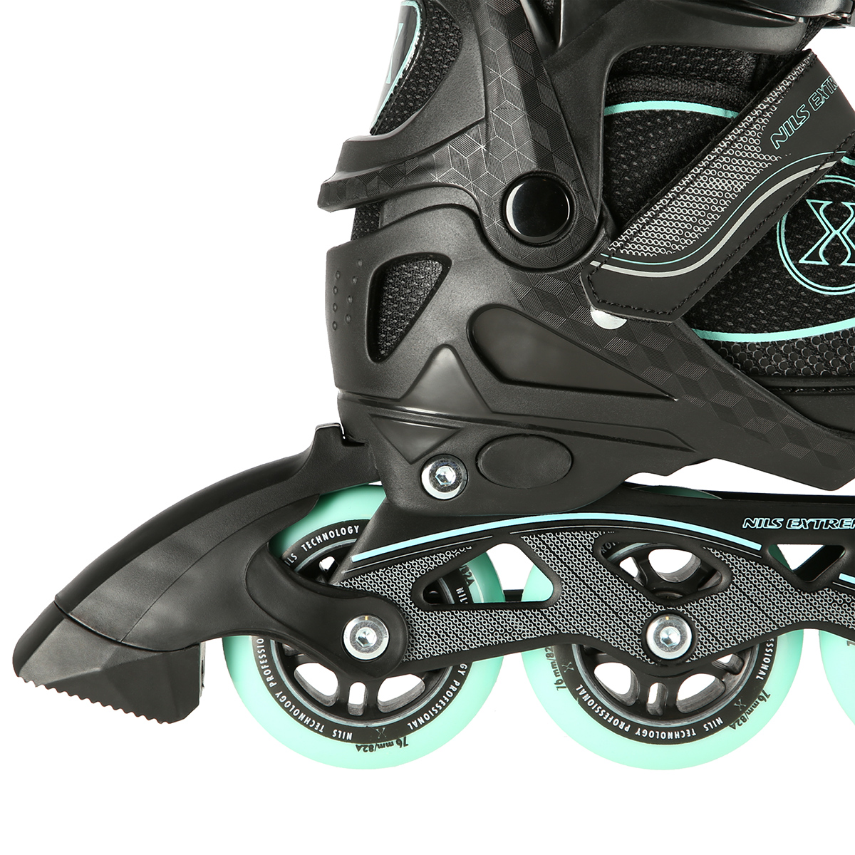 NA11008 Nils Extreme In line rullaluistimet ovat erinomainen valinta aloittelijoille ja harrastajille, jotka haluavat yhdistää mukavan istuvuuden, sulavan rullauksen ja hyvän tuen. Malli on saatavilla kolmessa tyylikkäässä värissä – musta‑pinkki, musta‑minttu ja harmaa‑lila – sekä kahdessa koossa, 35–38 ja 39–42. Näissä luistimissa yhdistyvät laadukkaat materiaalit, kevyt rakenne ja käytännölliset ominaisuudet, jotka tekevät niistä varmat kumppanit niin rauhallisille lenkeille kuin vauhdikkaampaankin harjoitteluun.