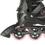 Luistimissa on kevyt mutta kestävä alumiinirunko, joka tarjoaa vakautta ja tukee luistelua ilman ylimääräistä painoa. Tukeva PP‑pohja lisää rakenteen jämäkkyyttä. Pehmeät PU‑renkaat rullaavat tasaisesti ja vaimentavat epätasaisuuksia, mikä tekee luistelusta miellyttävää myös hieman karheammalla asfaltilla. ABEC7‑laakerit varmistavat kevyen, sulavan ja hiljaisen rullauksen.