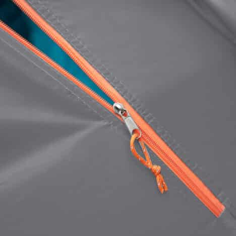 Telttakankaan 2500 mm vesipilariarvo ja teipatut saumat pitävät sateen ulkona, kun taas pohjakankaan 3000 mm vedenpitävyys takaa kuivan majoituksen maasta käsin. Kaksikerroksinen etuseinä suojaa sisäänkäyntiä ja luo lisämukavuutta.