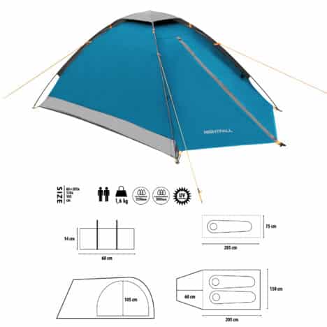 Kahden hengen teltta Nightfall NC6033 on fiksu valinta viikonloppuretkille, festareille tai pidemmille vaelluksille. Kun etsit luotettavaa ja kevyttä telttaa, joka pitää sinut kuivana ja suojassa, valitse Nightfall.