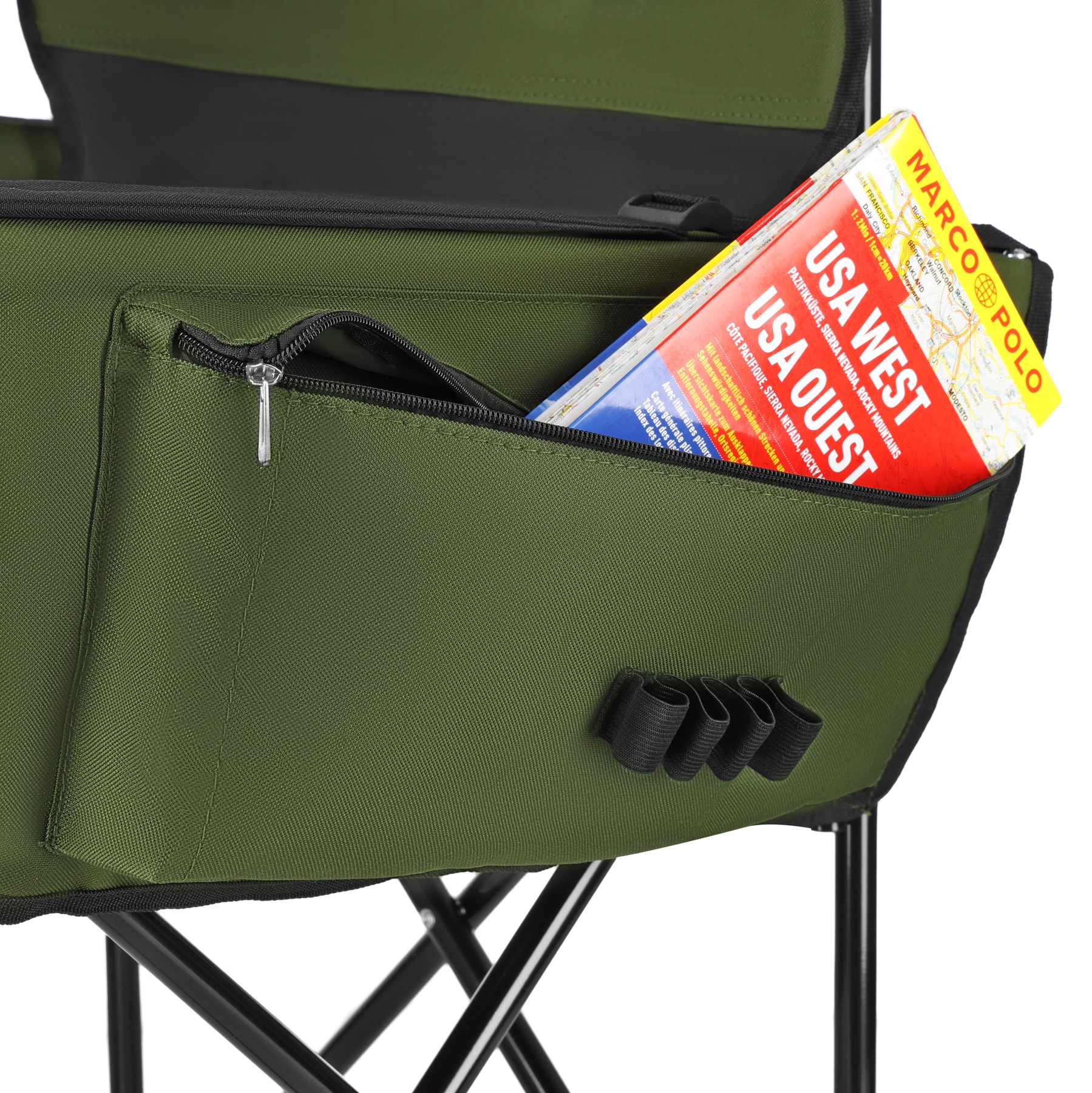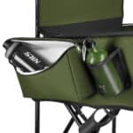 Tuolissa on integroidut sivutaskut, joihin saat kätevästi juomapullon, syötit, puhelimen tai muut pienet tarvikkeet. Selkänojan takapuolella sijaitseva mitta-asteiko tuo lisäkätevyyttä erityisesti kalastajille ja muihin tarkkuutta vaativiin ulkoaktiviteetteihin.