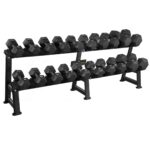 Jykevä kaksitasoinen käsipainoteline tarjoaa tukevan ja turvallisen säilytysratkaisun noin 20 käsipainolle. Se sopii täydellisesti niin kuntosaleille kuin kotitreenaajalle, joka arvostaa järjestystä ja laadukasta viimeistelyä.