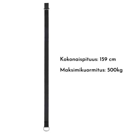 Remmin ydin on vahvaa nylonia, joka kestää kulutusta ja säätä. Leveä 5 cm rakenne jakaa kuorman tasaisesti, mikä lisää käyttöturvallisuutta ja vähentää painetta kiinnityspisteessä. Teräksinen lukko varmistaa, että ripustus pysyy tukevasti paikoillaan.
