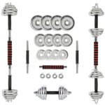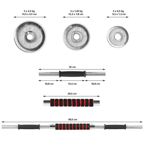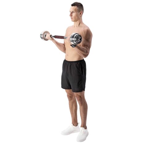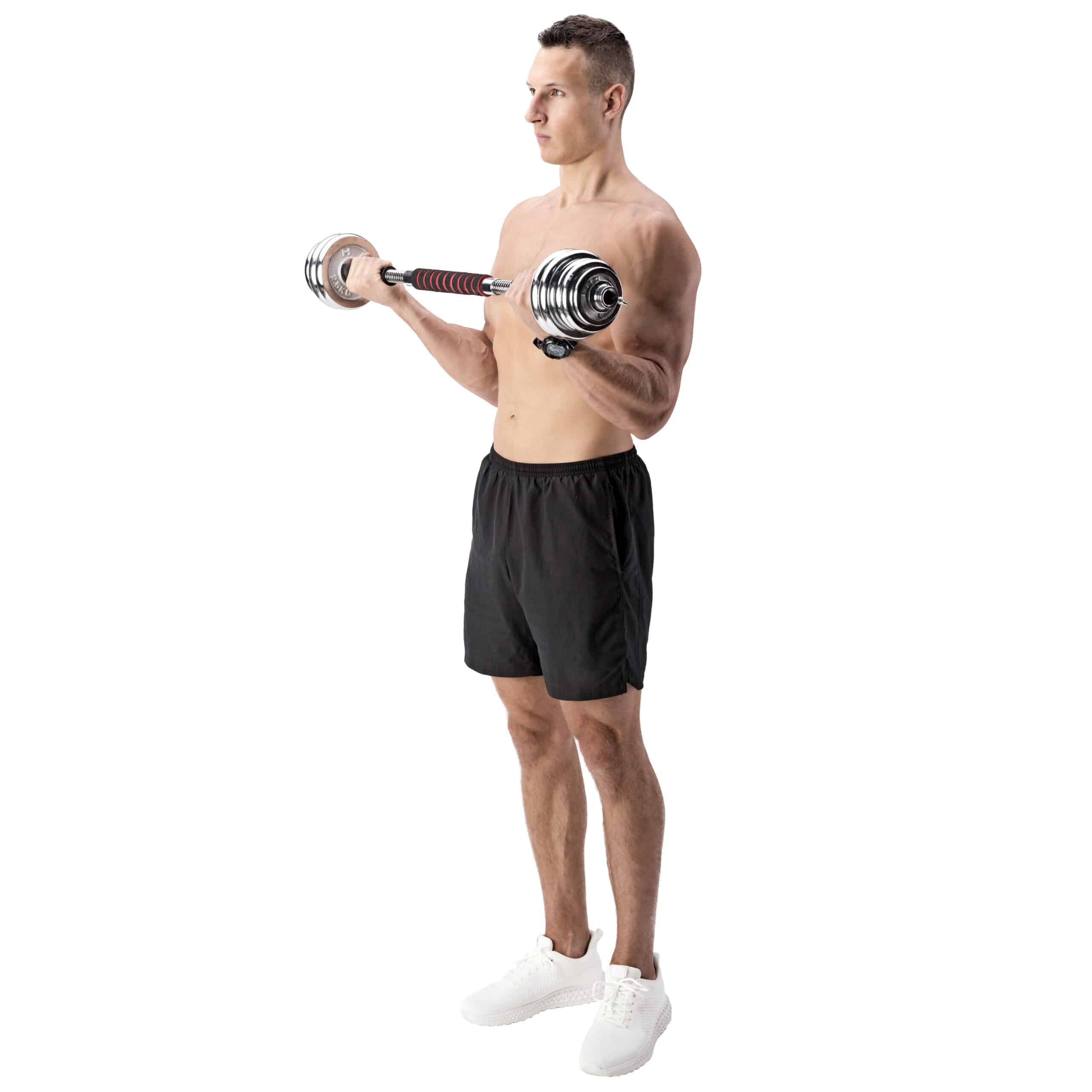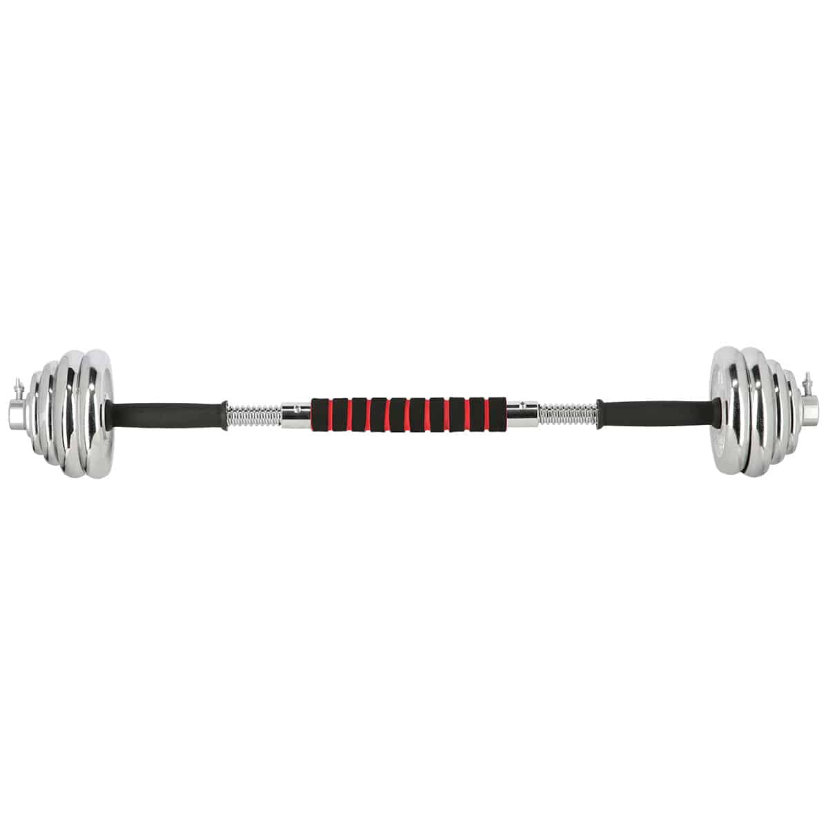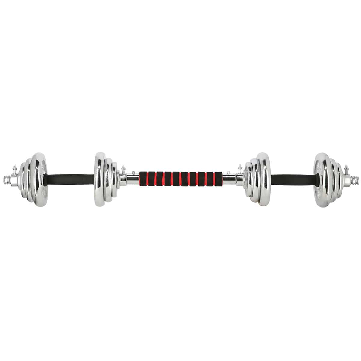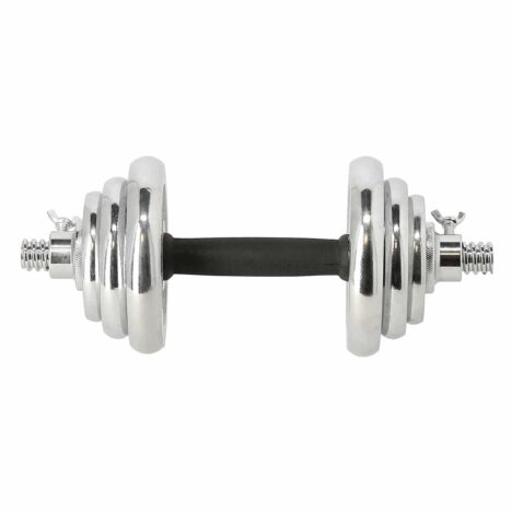 Monipuolinen ja tilaa säästävä kromattu painosetti on monipuolinen ratkaisu kotiharjoitteluun. Setti sisältää kaksi käsipainoa sekä liitäntäosan, jonka avulla voit yhdistää tangot yhdeksi levytangoksi. Näin saat yhdestä paketista sekä käsipainot että tangon – ilman että kotisali muuttuu painolevyluolaksi. Kromattu teräs kestää käyttöä ja näyttää samalla siistiltä ja kumipinnoitetut otepinnat tekevät treenaamisesta miellyttävää ja turvallista.