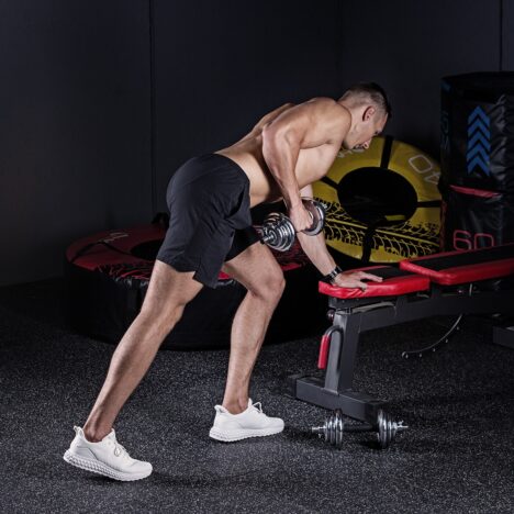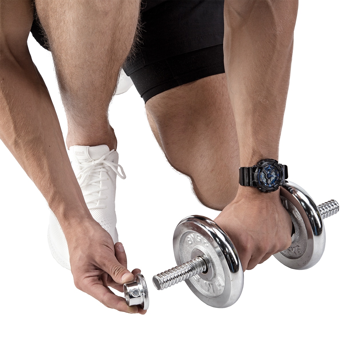 Liitäntäosan pehmustettu keskiosa lisää mukavuutta esimerkiksi hauiskäännöissä ja pystypunnerruksissa ja painot lukitaan paikoilleen perinteisillä kierrelukoilla. Salkku helpottaa setin säilytystä ja kuljettamista: nappaa mukaan, sulje, ja painot pysyvät järjestyksessä.