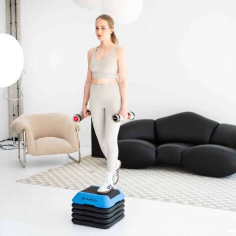 Steppilaudassa on viisi eri korkeustasoa: 10, 15, 20, 25 ja 30 cm. Näin voit säätää harjoituksen intensiteettiä oman kuntotasosi mukaan.