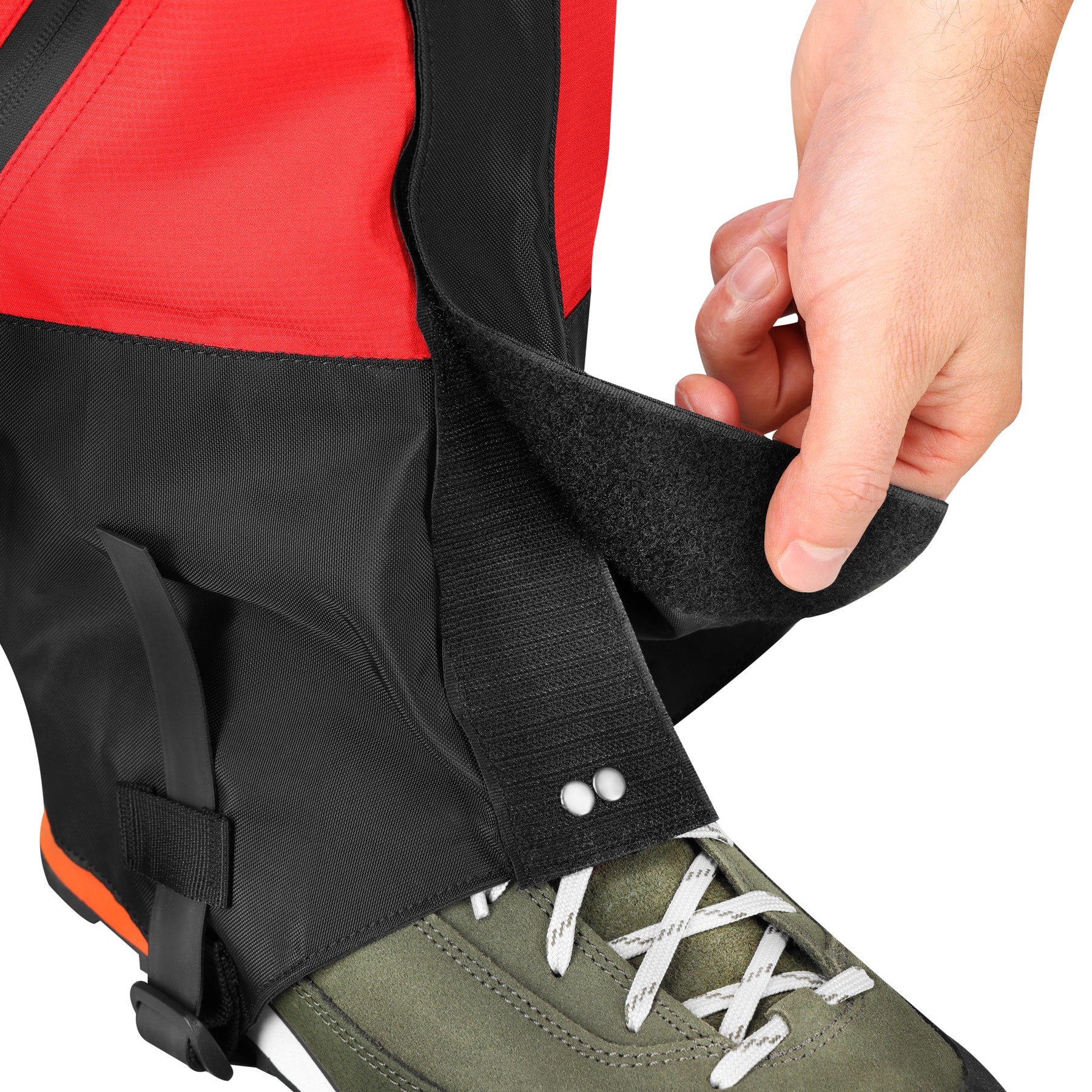 Tarrakiinnitys mahdollistaa nopean pukemisen ja lahkeiden mukauttamisen juuri sinun jalkaasi sopivaksi. Alaosa istuu tiiviisti kengän päälle, suojaten sitä lialta ja kosteudelta.
