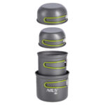 NC1767-setti sisältää kaksi kattilaa sekä kaksi kulhoa, joita voidaan käyttää myös paistinpannuina. Tämän ansiosta voit valmistaa monipuolisia aterioita niin nuotiolla kuin retkikeittimelläkin. Setti soveltuu erinomaisesti niin nopeaan aamupalaan kuin lämpimän illallisen valmistukseen pitkän ulkoilupäivän päätteeksi.
