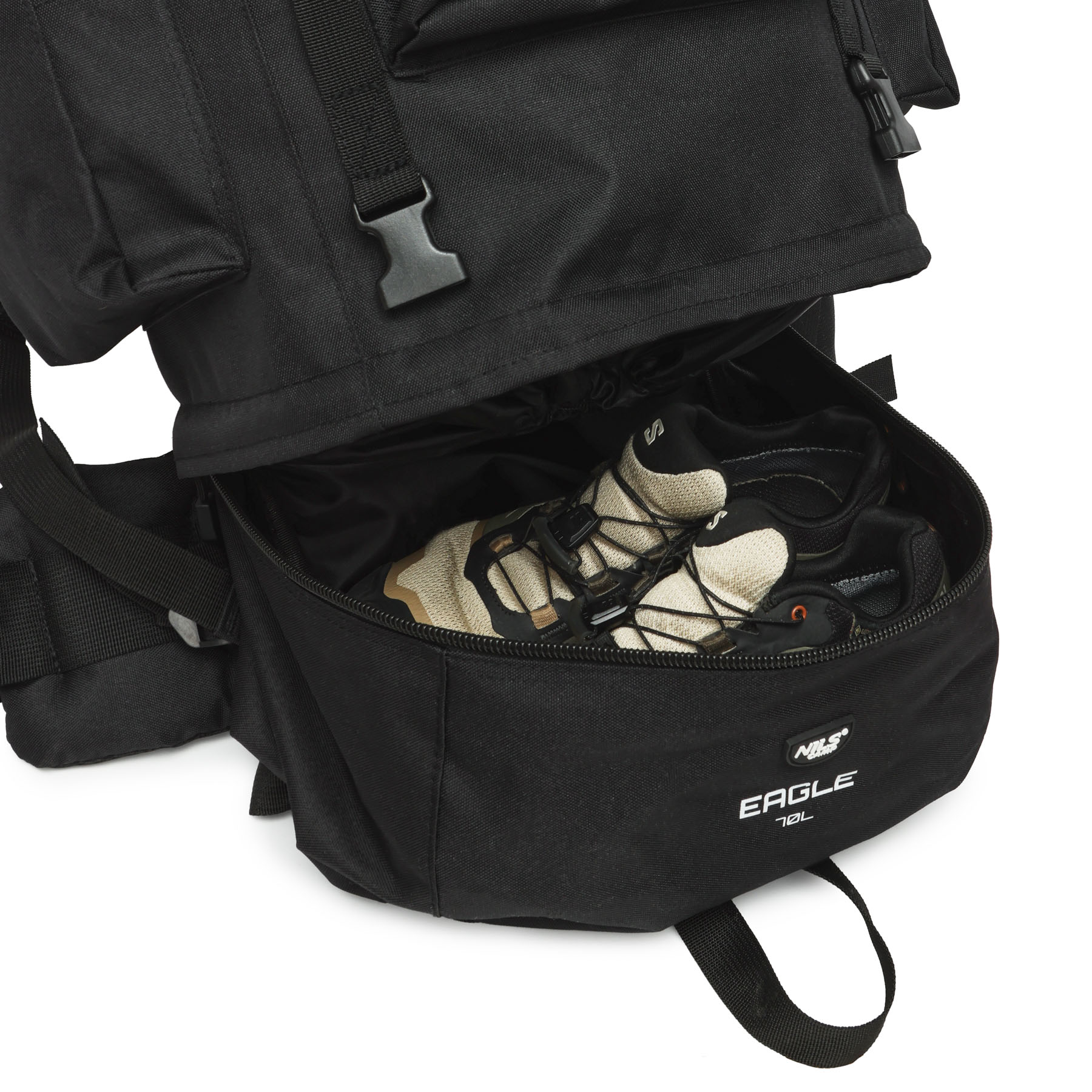 Nils Camp Eagle 70 l -retkireppu on suunniteltu retkeilijälle, joka arvostaa luotettavuutta, kestävyyttä ja toimivuutta kaikissa olosuhteissa. Sotilastyylisen rakenteensa ja suuren 70 litran tilavuutensa ansiosta tämä reppu tarjoaa juuri sitä, mitä monipäiväiset vaellukset, vaativat maastot ja intensiiviset retkikokemukset edellyttävät. Mukaan mahtuvat helposti vaihtovaatteet, ruoka, makuupussi, teltta ja kaikki tärkeät retkeilyvarusteet.