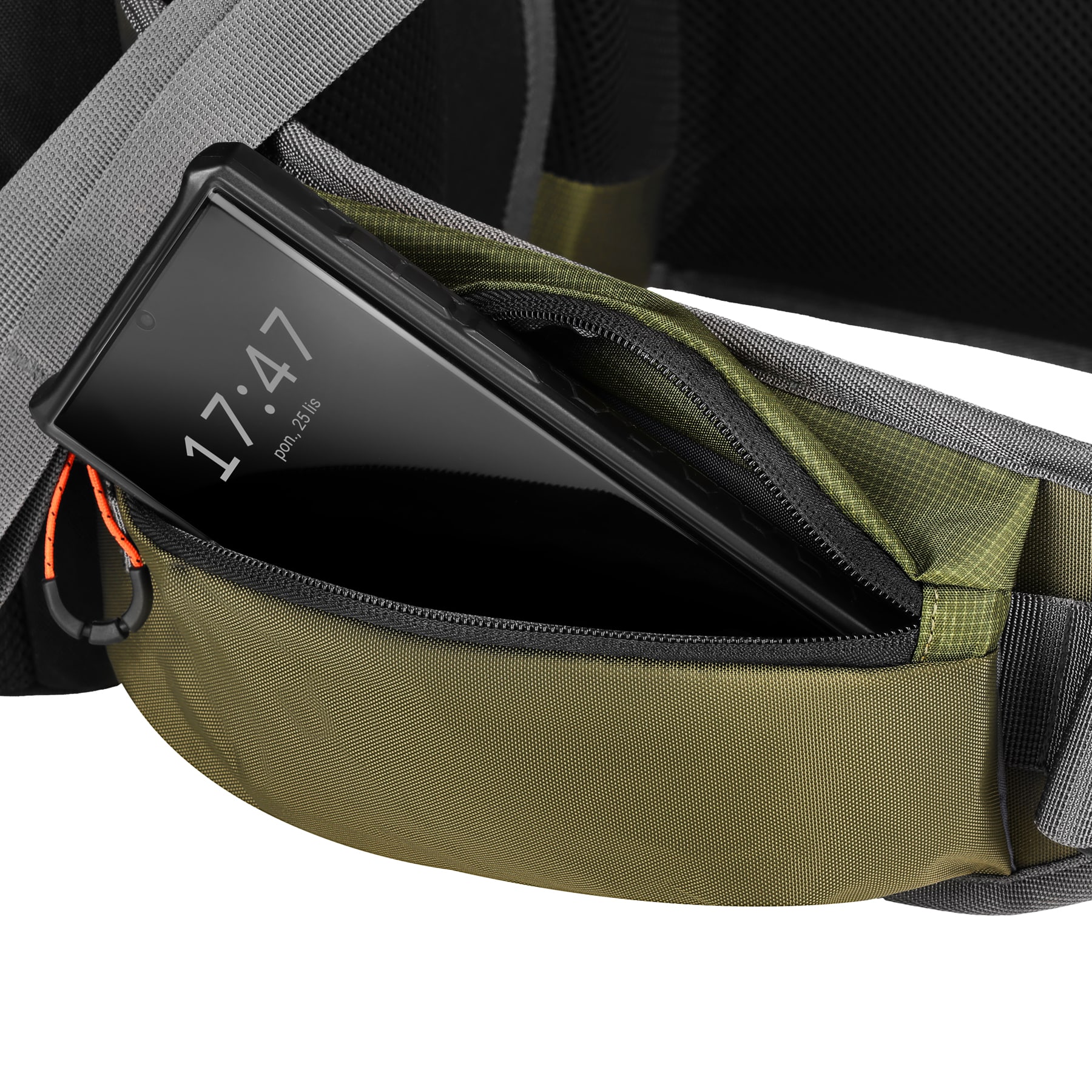 Luonnon sävyistä inspiraationsa saanut värimaailma sopii saumattomasti metsä- ja vuoristoympäristöön. Säädettävä rinta- ja lantiovyö viimeistelevät ergonomisen kantokokemuksen.