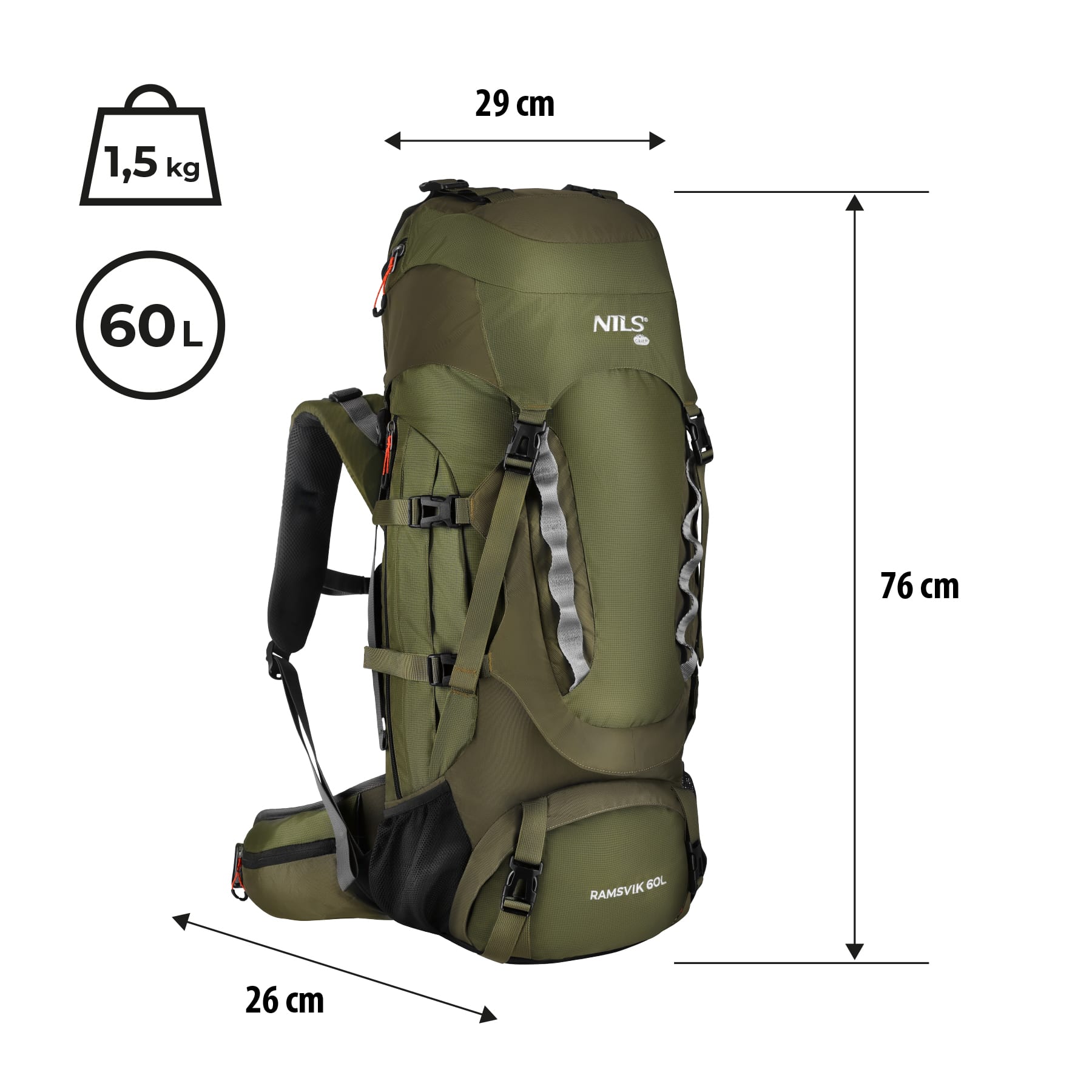 Nils Camp Ramsvik on tilava ja monipuolinen retkireppu pidemmille vaelluksille, leirireissuille ja vaativiin outdoor-seikkailuihin. Se yhdistää suuren 60 litran kapasiteetin, toimivat säilytysratkaisut sekä erinomaisen kantomukavuuden – myös raskaammilla kuormilla.