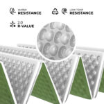 Pituutta 195 cm ja leveyttä 60 cm – alusta tarjoaa mukavan tilan myös pidemmälle käyttäjälle. Paksuus 1.5 cm antaa miellyttävän tuen ja eristyksen. R‑arvo 2.0 takaa hyvän peruseristyksen.