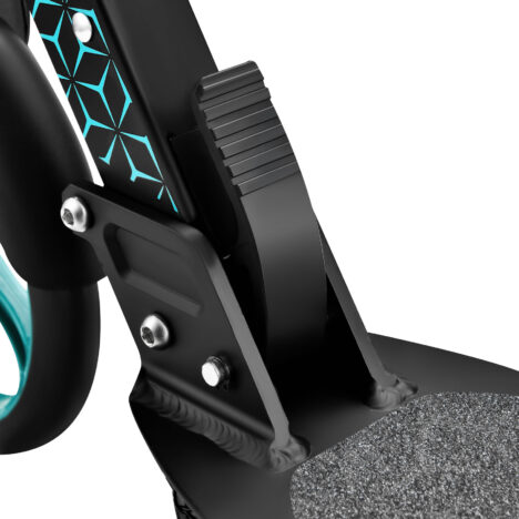 Suuret 200 mm polyuretaanipyörät ja laadukkaat ABEC 7 -laakerit takaavat pehmeän ja tasaisen ajon niin asfaltilla kuin epätasaisemmillakin alustoilla. Ergonomiset, liukumattomasta TPR-materiaalista valmistetut kahvat tuntuvat mukavilta ja varmistavat tukevan otteen. Säädettävä ohjaustanko (93–110 cm) mahdollistaa mukavan ajoasennon eri pituisille käyttäjille, ja matala alusta helpottaa tasapainon hallintaa erityisesti nuoremmilla kuskeilla. Takana sijaitseva levyjarru lisää turvallisuutta vauhdikkaampaan menoon.