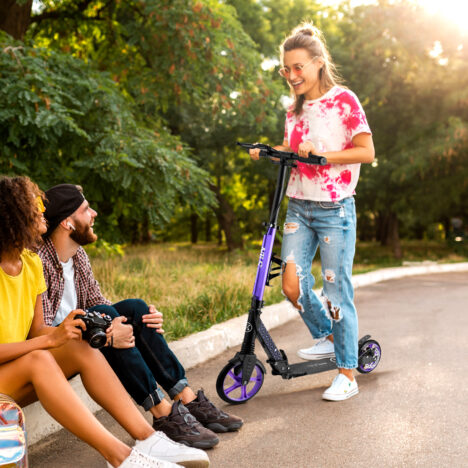 Taitettava rakenne tekee potkulaudan säilyttämisestä ja kuljettamisesta helppoa. Se kulkee näppärästi mukana koulussa, bussissa tai kesäreissulla. Kirkas violetti tai raikas turkoosi väri tekee vaikutuksen ja tiukat EN71-1:2014 -turvallisuusstandardit takaavat, että tämä taitettava skuutti on myös turvallinen valinta.