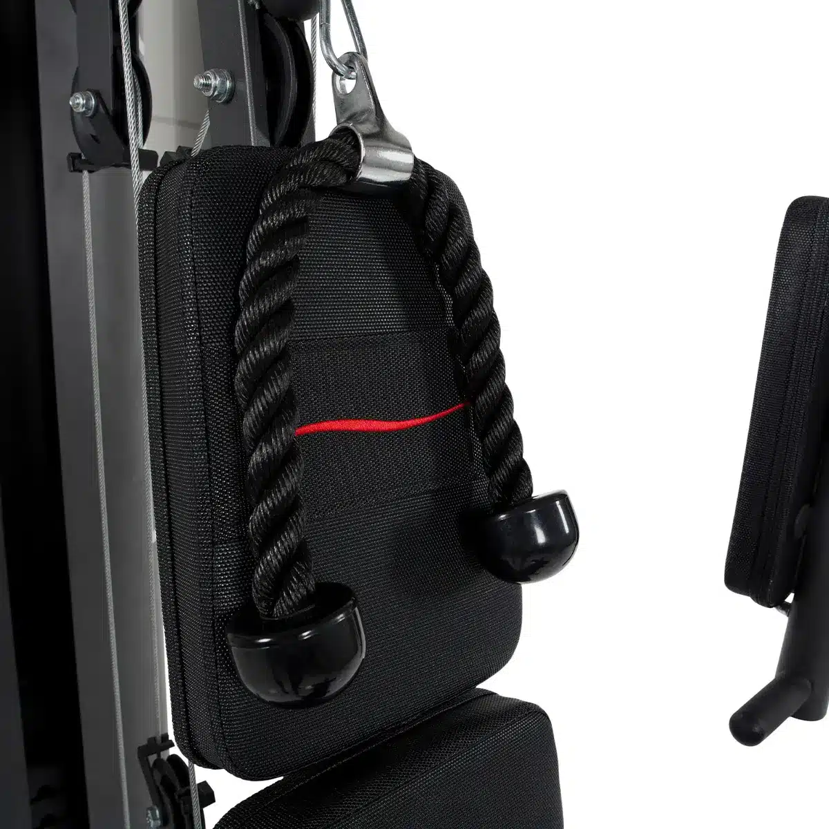 Toimitukseen sisältyy myös laaja varustepaketti, johon sisältyy leveä taljatanko, ojentajaköysi ja taljakahvat.