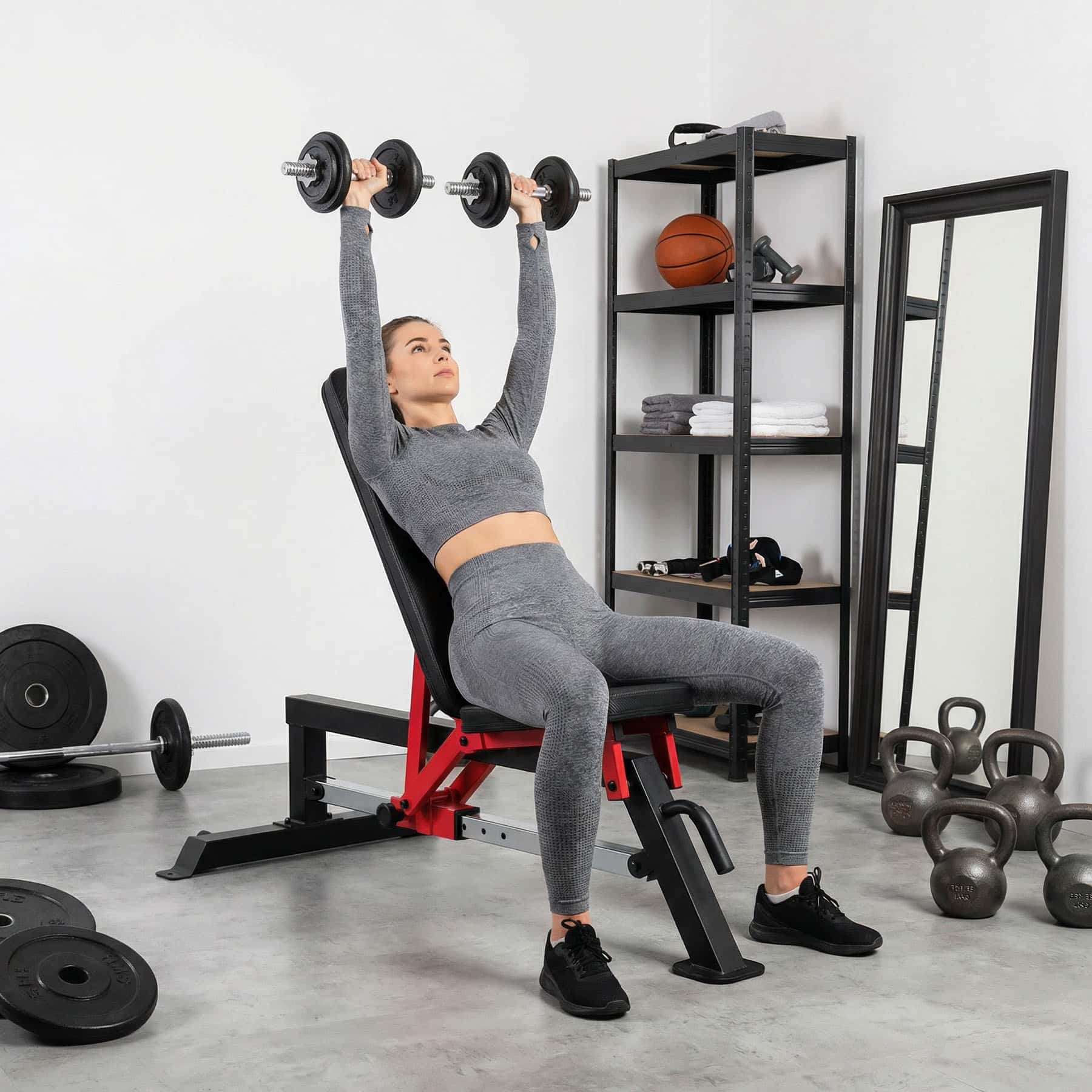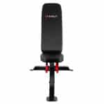 Tämä tuo vaihtelua liikkeisiin ja aktivoi tehokkaasti rintaa, hartioita ja käsivarsia. Istuinosassa on lisäksi 3-portainen säätö (0°–9°), joka parantaa ergonomiaa eri kulmissa harjoiteltaessa.