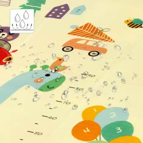 Matto on valmistettu XPE-vaahtomuovista, joka on erittäin kestävä ja pehmeä materiaali. Se eristää hyvin kylmästä lattiasta, ja liukumaton pinta tuo turvaa myös vauhdikkaampiin leikkihetkiin. 1 cm paksu vaahtokerros pehmentää mahdollisia kaatumisia ja tukee lapsen ensimmäisiä liikkeitä – konttaamisesta kävelemisen harjoitteluun.