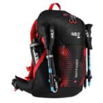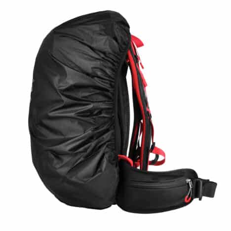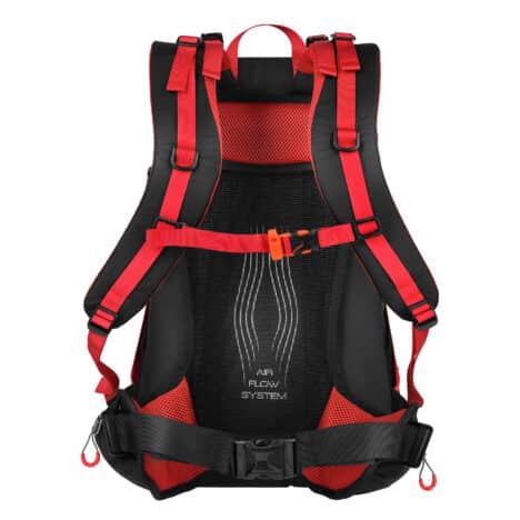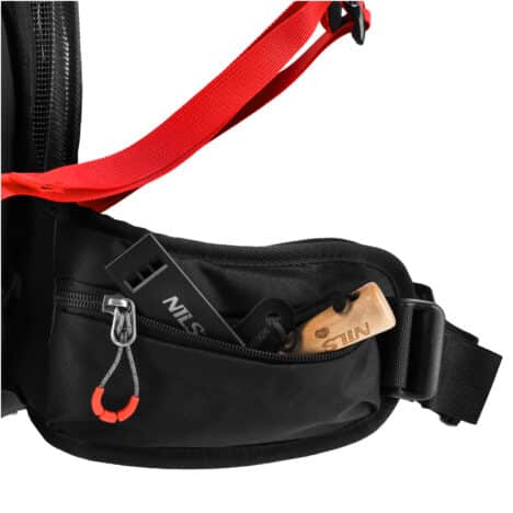 Rintaremmin soljessa on integroitu pelastuspilli hätätilanteita varten. Repussa on myös lisäpaneeli varusteiden, kuten vaellussauvojen kiinnittämiseksi. Kaksi sivutaskua ja vyötäröremmin vetoketjutaskut tarjoavat säilytystilaa esineille, jotka haluat pitää käden ulottuvilla, kuten puhelimelle, kukkarolle ja avaimille.